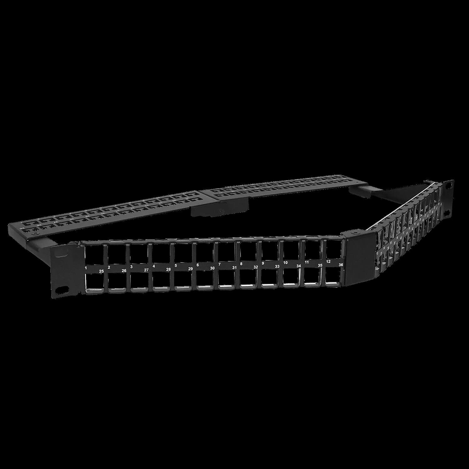 1RU High Density 48 Port UTP Angled 'V' Style Patch Panel - Unloaded (support bar included) 4Cabling’s 48 Port Angled Patch Panels are designed to easily route cables into a vertical cable manager, eliminating the need for horizontal, front cable management bars. The empty or unloaded patch panels are available to snap in Cat5e, Cat6 and Cat 6A keystone jacks or couplers. This unique networking solution provides a higher density connectivity fill solution into server racks and cabinets, and the angling of the patch panels allow the cables to flow into the vertical cable management. Label and inlaid marks makes for easy identification and enables faster installation. For unshielded cable solutions. Fits all industry standard 19-inch racks and cabinets For use with Fibre Keystone Insert for LC and SC Click here for suitable CAT6 RJ45 Keystone Jack 010.004.1005 FEATURES BETTER CABLE MANAGEMENT. Angle reduces the bend radius of cables, allowing them to be routed horizontally for better organisation EASY ACCESS. Open-angle allows immediate rear access to connections from the front of the patch bay Patch leads route directly into vertical managers saving rack space by eliminating horizontal cable management Mounts on 19” equipment racks Compatible with Cat5e, Cat6 & Cat6A Keystone Jacks Internal cable manager maintains proper bend radius V-type snap-in panel: angled for easy handling of cables Label and inlaid marks are available for the identification for cabling management SPECIFICATIONS Height: 1RU, 48-port Panel Body Material: SPCC 1.5mm Support Bar Material: SPCC 1.5mm Size: 19 inch Set of 4 x cage nuts included WARRANTY 1-year limited warranty. WHY 4CABLING? Australia’s leading importer & wholesaler of 19” server racks, copper, ethernet cable, fibre optic leads & structured networking products ISO 9001, NSW Govt. & GITC (QLD Govt.) approved supplier Secure online shopping 24/7 A loyal customer base of 100k+ who trust us for their data & electrical needs Over 3000 quality products in stock ready to go All products are approved as per local Australian standards Warranty & peace of mind return policy Lightning fast delivery nationwide Expert advice Proudly 100% Australian owned & operated